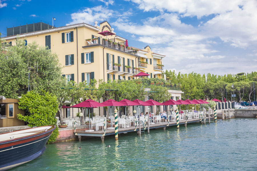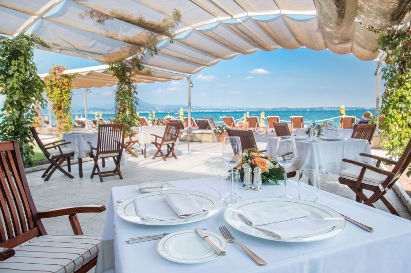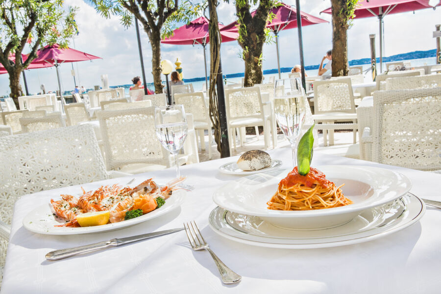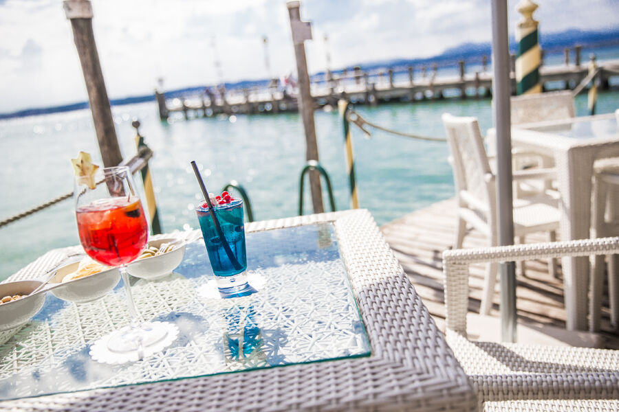 All’esterno i tavoli si distribuiscono su una terrazza e sul pontile che dà sulle acque del Garda, dove vi accompagneremo se deciderete di arrivare a bordo di uno dei nostri motoscafi.