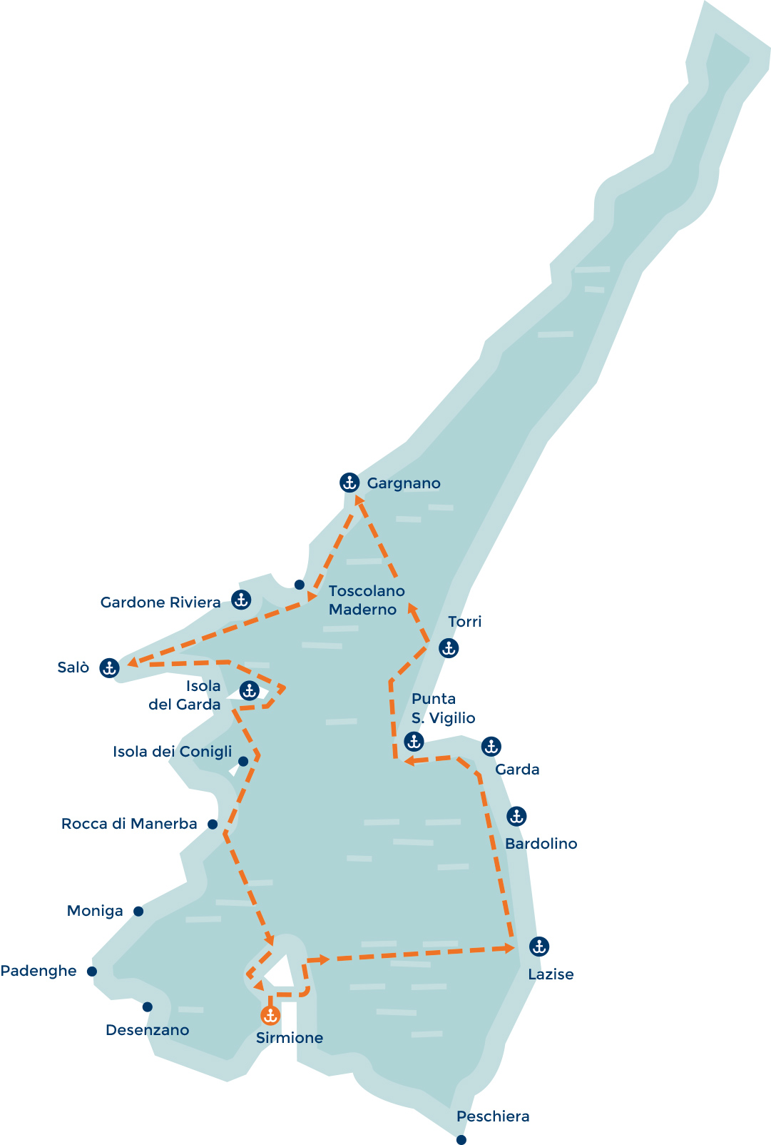 Nach der Tour der Halbinsel Sirmione geht es weiter zu dem beeindruckenden Felsen Rocca di Manerba, der Insel San Biagio, der wunderschönen Gardaseeinsel und der faszinierenden Costa Romantica. Hier geht es weiter in Richtung Norden, wo wir die Küste zwischen Toscolano Maderno und Gargnano, wo sich die Villa Feltrinelli befindet, der ehemalige Wohnsitz von Mussolini. Wir fahren über den See zum venetischen Ufer, wo wir die malerische Punta San Vigilio, und den Golf von Garda sehen, wo die Villa Canossa versteckt ist. Auf der Fahrt entlang der Küste sehen wir Bardolino und Lazise. Dann geht es schließlich zurück nach Sirmione. Während dieser Tour ist es möglich, eine Pause zum Mittagessen zu machen oder um ein kleines Städtchen am See zu besichtigen.